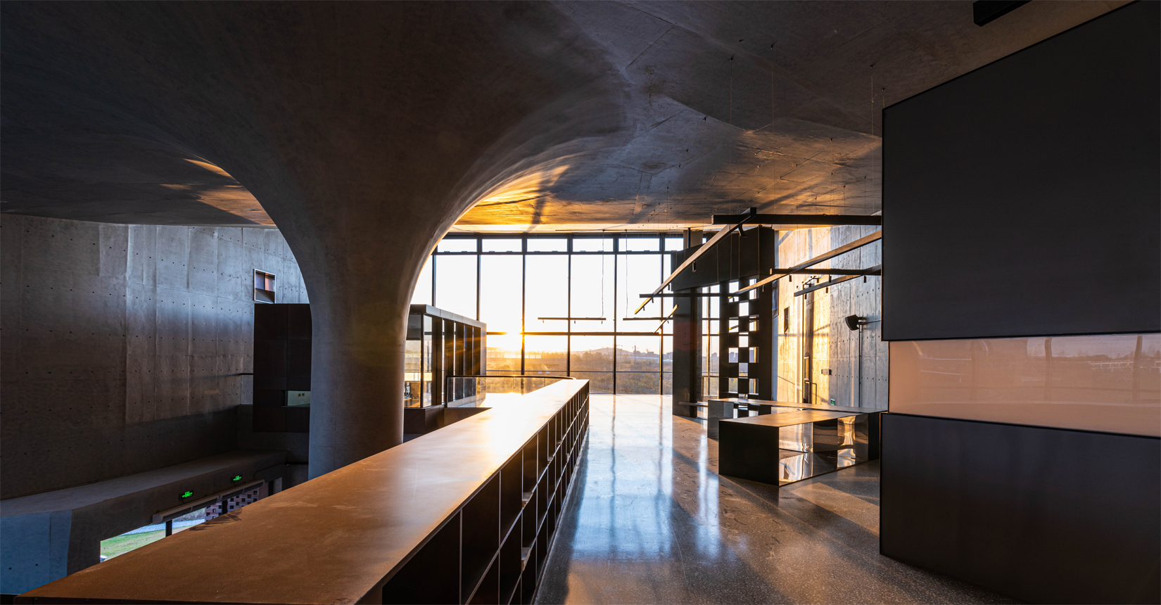 接待大廳、休息區(qū)、展覽區(qū)、室內(nèi)小劇場、辦公區(qū)、會議區(qū)、室外小劇場和自然環(huán)境相互交融并置,相互之間流線獨立又彼此滲透。
