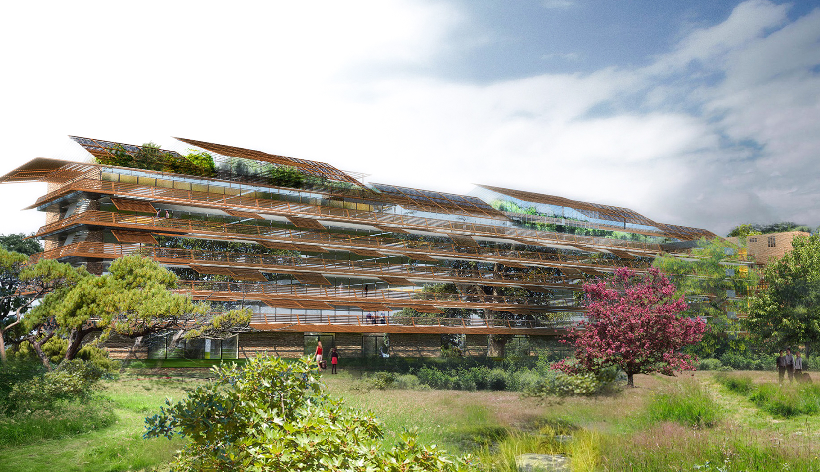 我們將建筑進行分組、散落布置,以多層建筑為主,高低錯落,建筑之間穿插各種不同主題的花園景觀,形成“花園中的藝術聚落”。