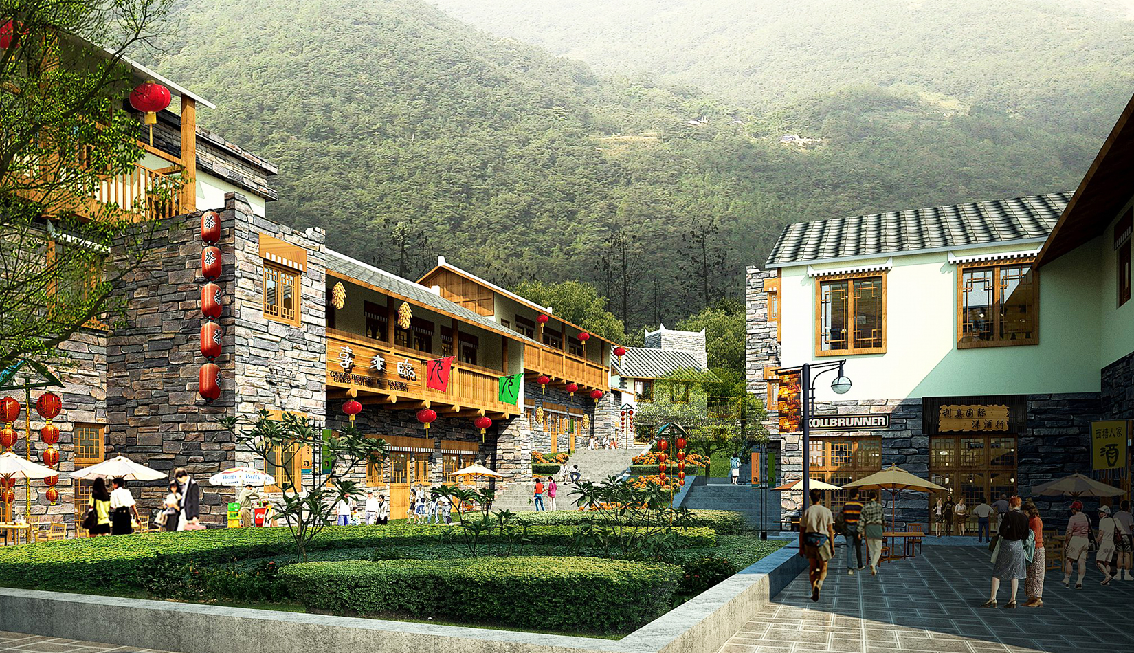 建筑布局依山就勢,充分結(jié)合自然地形地貌,建筑體量與周邊環(huán)境和諧相融的生態(tài)型城鎮(zhèn);