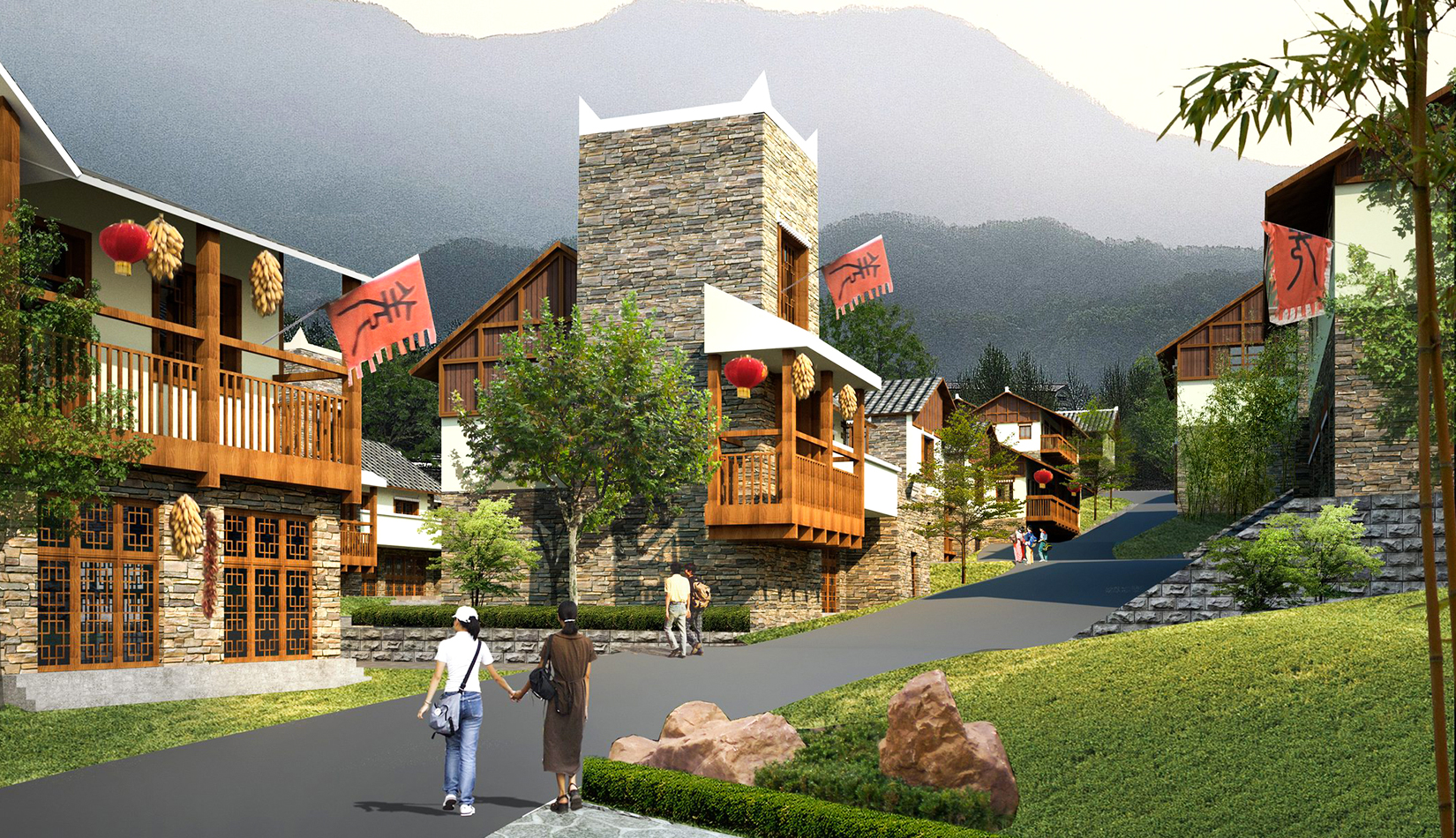 在充分研究分析現(xiàn)狀自然環(huán)境、建筑風(fēng)貌、建筑布局特點(diǎn)以及街道尺度、公共空間分布等要素的前提下,尊重歷史,延續(xù)文脈,采用城市設(shè)計(jì)的手法,通過靈活多樣的建筑布局、羌族風(fēng)格的建筑風(fēng)貌、豐富多變的公共空間、自然生態(tài)的人居環(huán)境、富有變化,自然融合的天際線等設(shè)計(jì)手段,力求打造一個(gè):