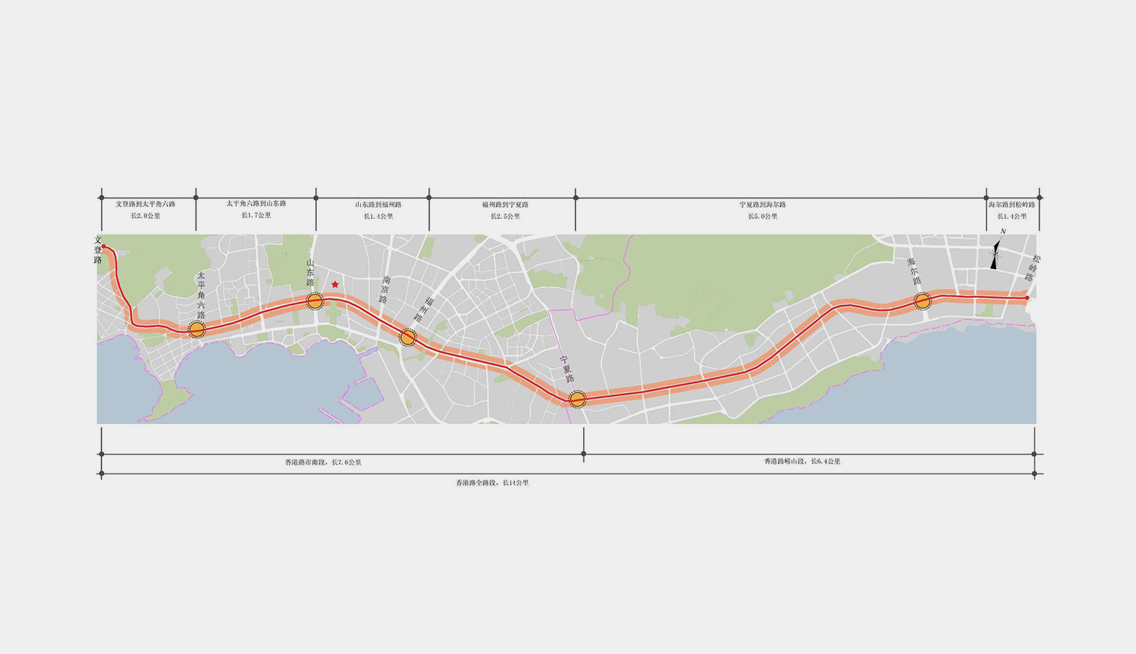 重點(diǎn)道路戶外廣告控制性導(dǎo)則規(guī)劃期限為2011—2020 年。規(guī)劃依據(jù)青島市城市總體規(guī)劃,結(jié)合城市用地現(xiàn)狀功能進(jìn)行編制,并允許伴隨地塊功能變化進(jìn)行調(diào)整,建議5 年修編一次。