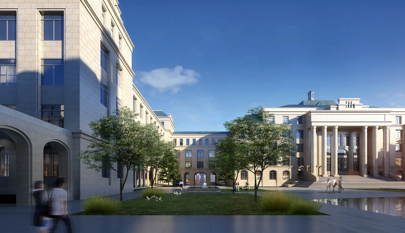 景觀設(shè)計引用了《禮記聘義》中對玉的六大特征:“禮”“知” “樂” “信”“義”“仁”作為景觀主題植入學(xué)校各個重要空間。