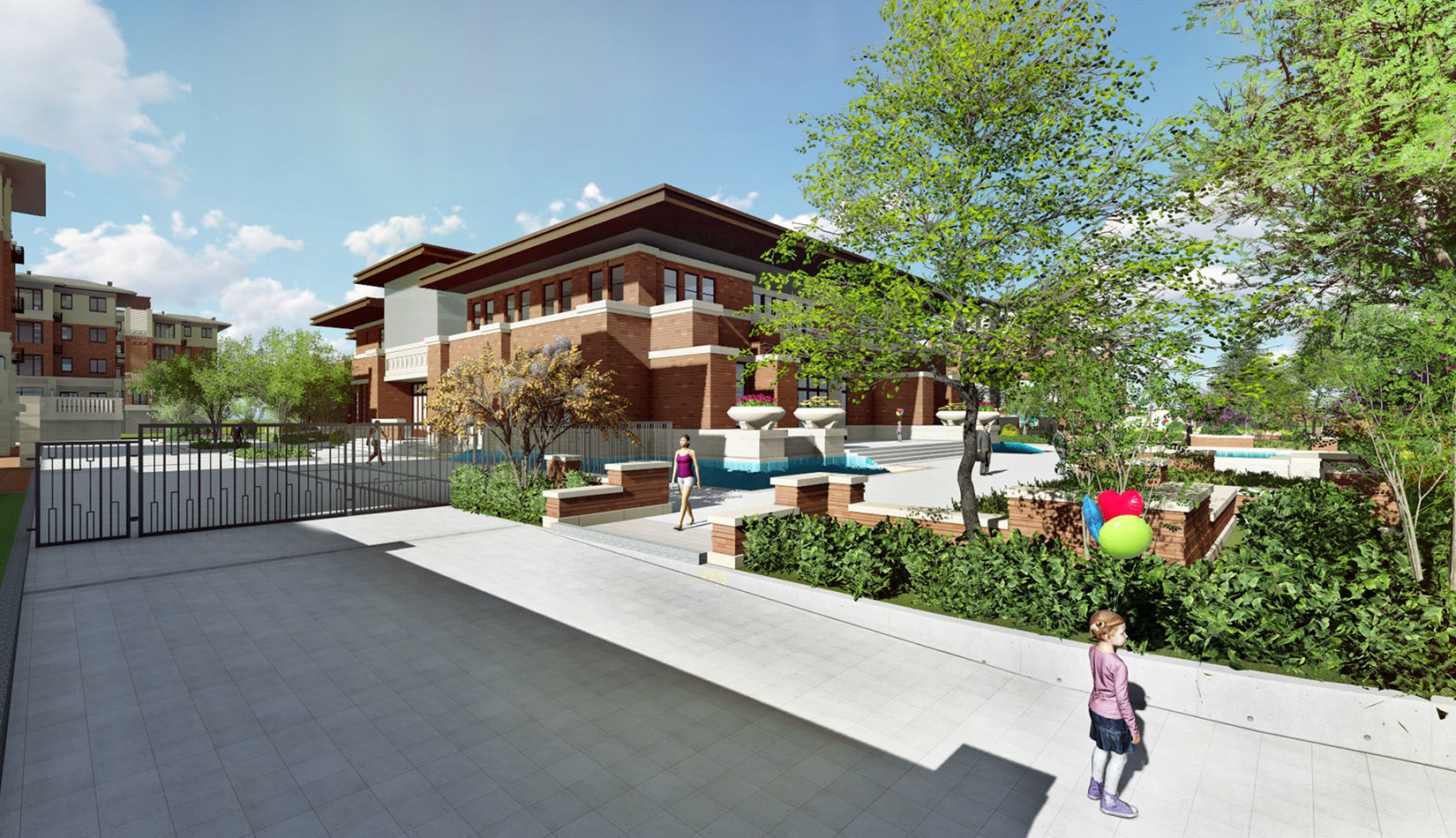 歸化傳統(tǒng)的學(xué)院文化,通過景觀空間的意境、景觀小品、標(biāo)識系統(tǒng),鋪裝綠化等多種形式,回歸最本真和淳樸的生活。